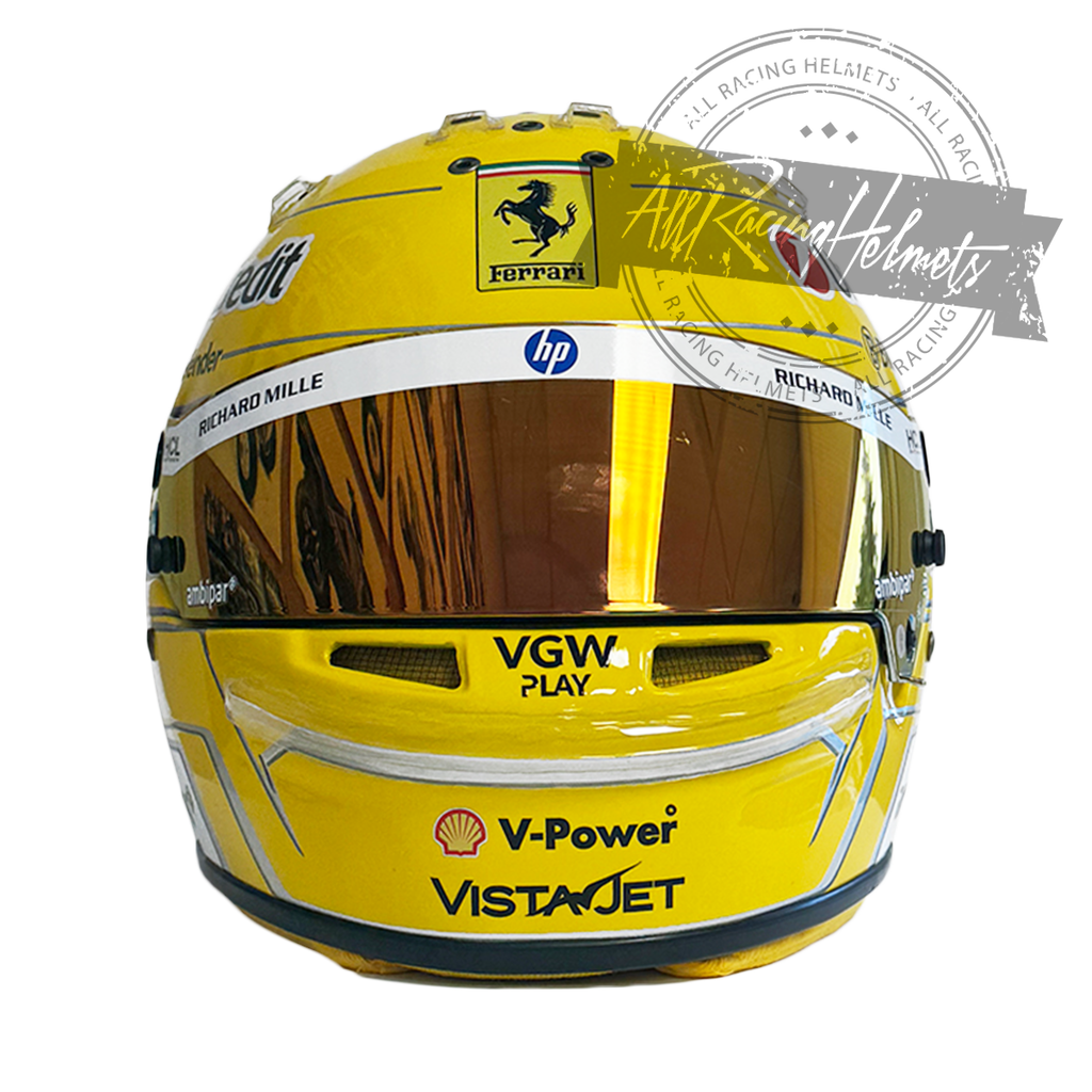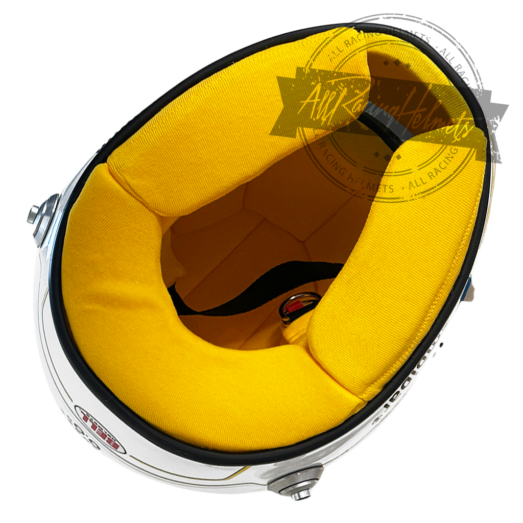 Each helmet is an exact Replica of the helmet used by the driver at a certain Grand Prix event.