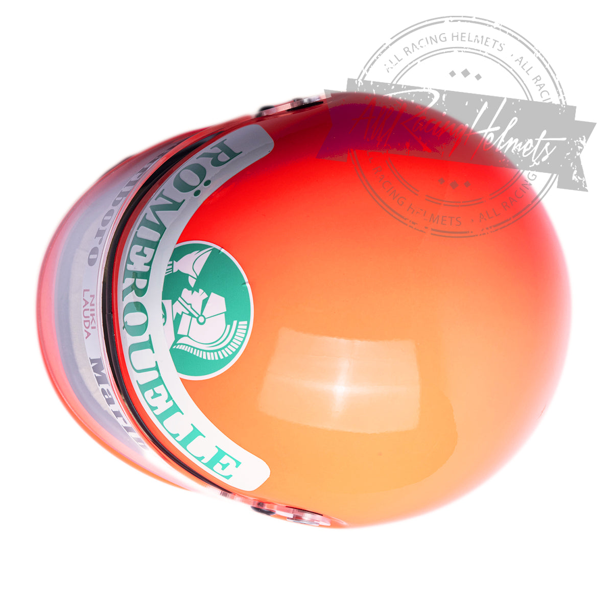 Each helmet is an exact Replica of the helmet used by the driver at a certain Grand Prix event.